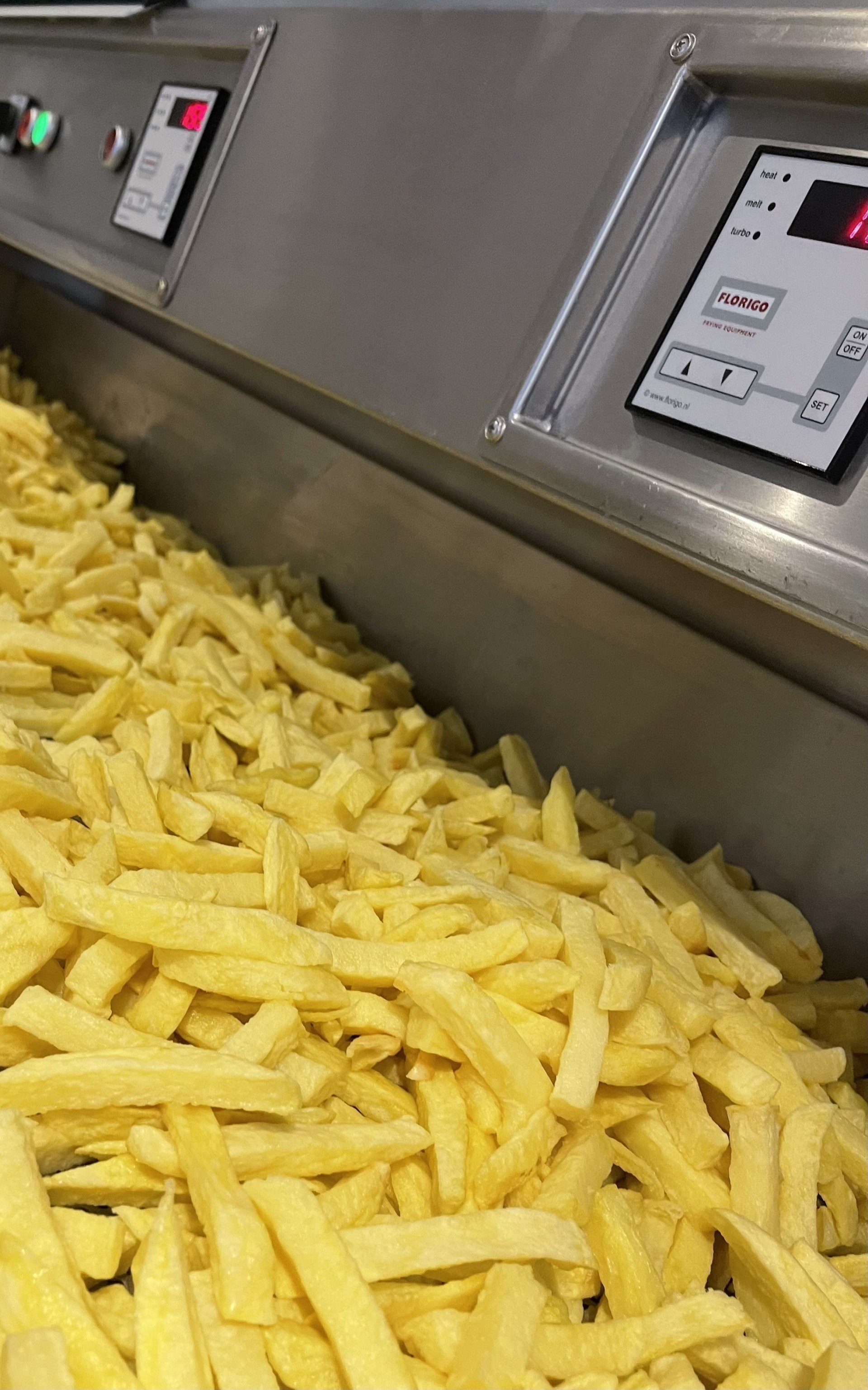 De aardappelen worden speciaal geselecteerd en ter plekke gesneden en direct daarna voorgebakken & afgebakken tot een krokante heerlijke friet.